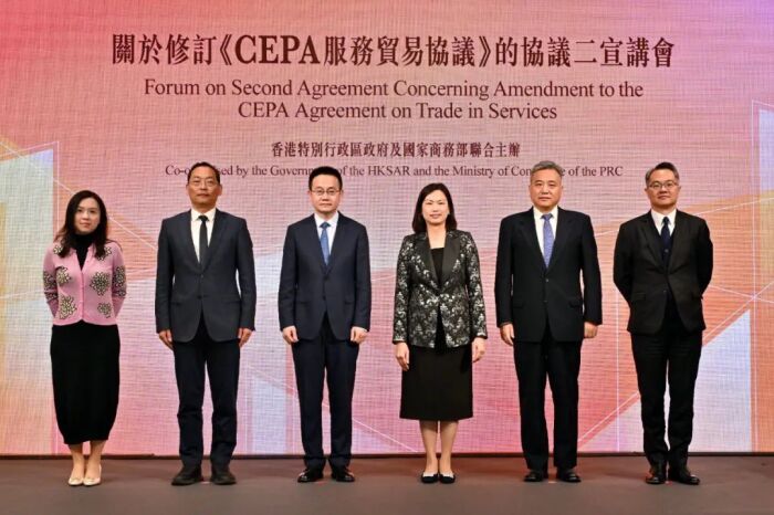2月19日,商务部与香港特区政府在香港联合举办宣讲会,由中央有关部门向香港业界介绍《关于修订<《内地与香港关于建立更紧密经贸关系的安排》(CEPA)服务贸易协议>的协议二》(简称《修订协议二》)的开放措施、落实安排并现场解答业界的提问。香港本地及外国商会、驻港领事馆、主要贸易组织以及专业界别的代表350余人参加宣讲会。