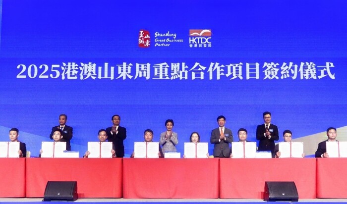 活动现场举办了27个鲁港重点合作项目的签约仪式,涵盖数字经济、绿色能源、医养健康、智能制造、现代农业、金融服务等多个领域。与会嘉宾还参观了“好品山东”产品推介展示。